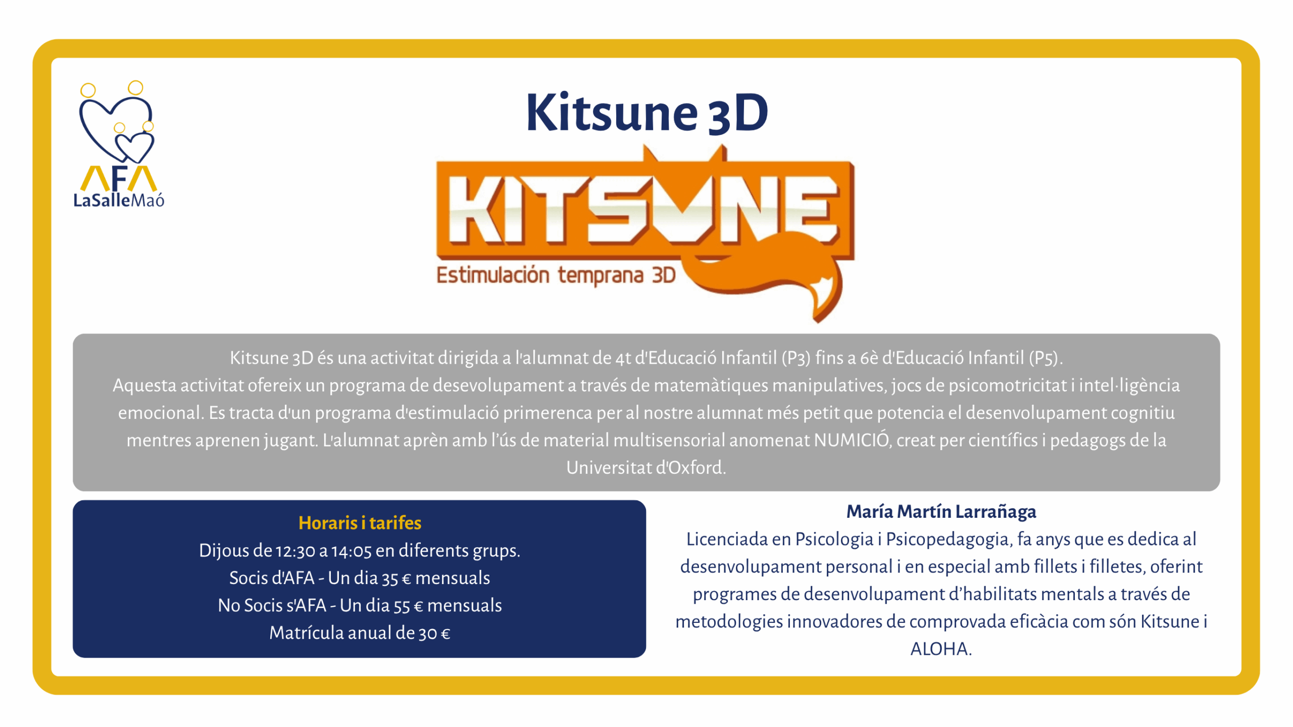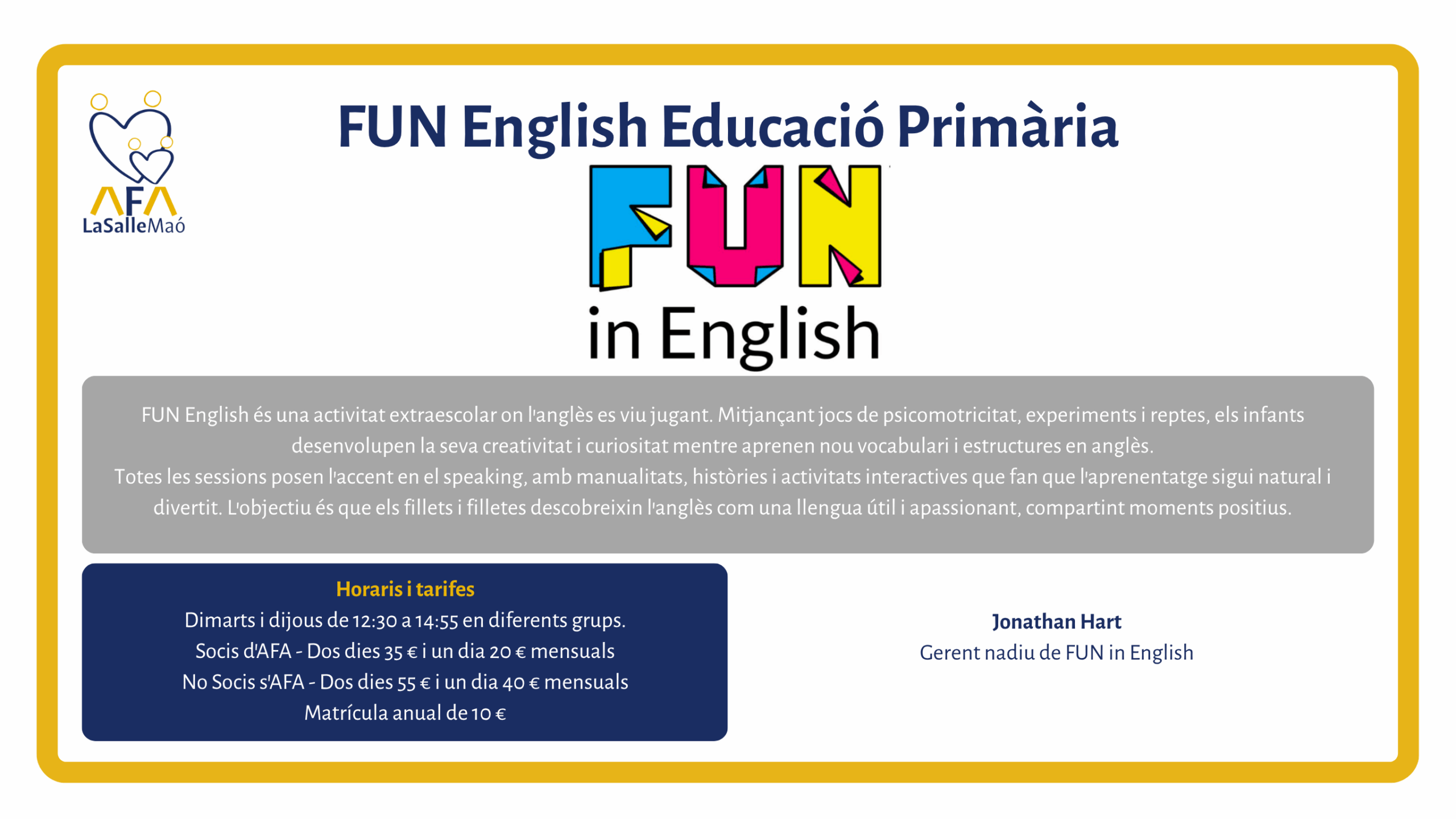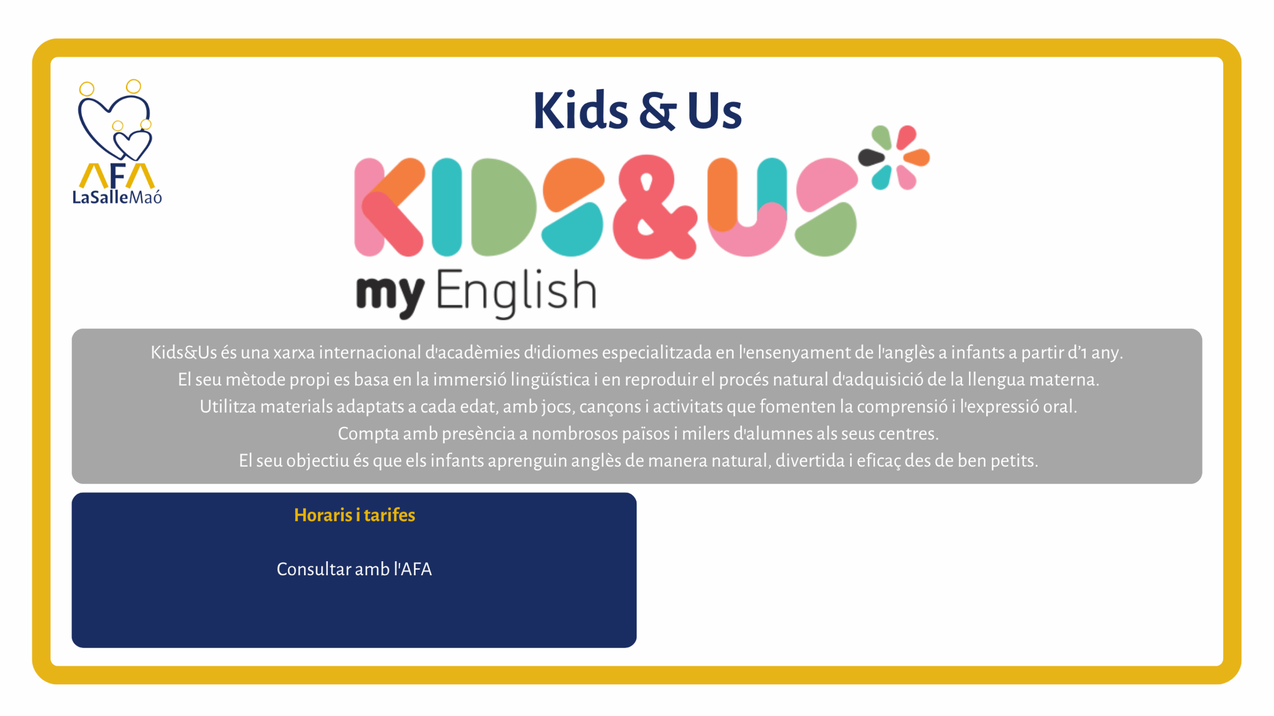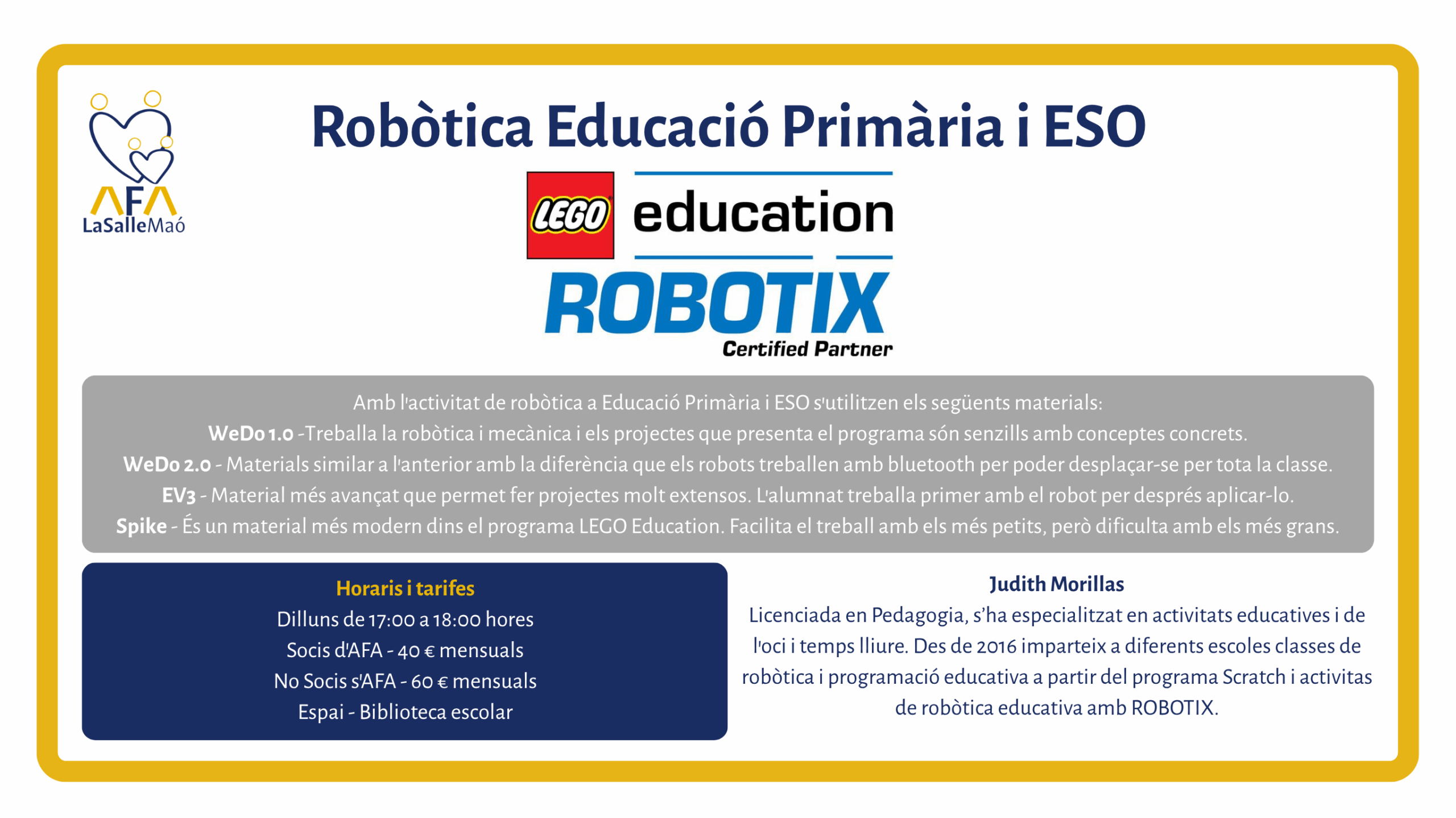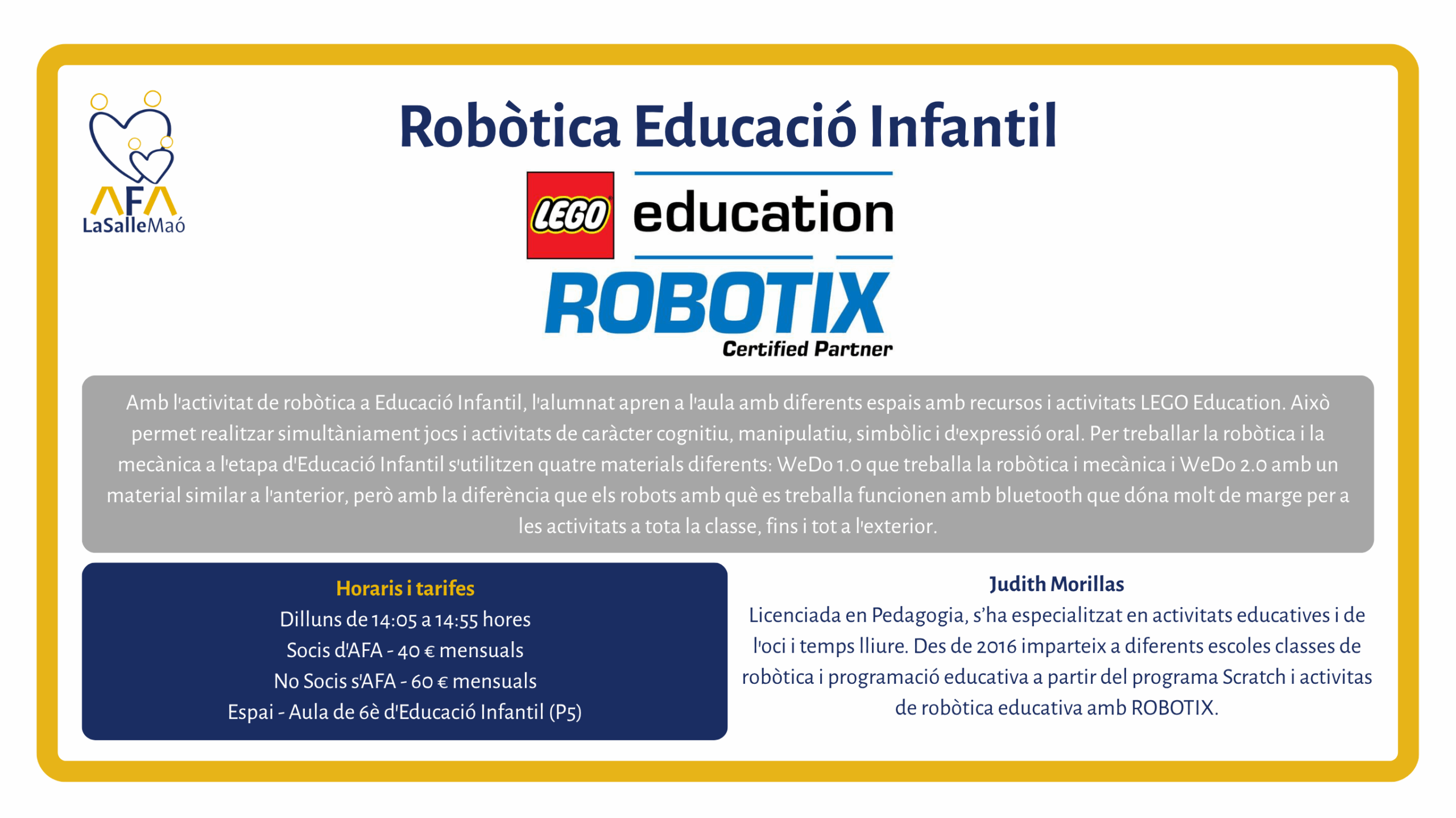Per completar l’horari escolar i formatiu del nostre alumnat, l’Associació de Famílies de La Salle Maó proposa un ampli ventall d’activitats extraescolar fora d’horari lectiu, tant al migdia com el capvespre. Tota l’oferta d’activitats del centre està dissenyada, organitzada i coordinada per l’AMPA de l’escola en constant diàleg amb el centre educatiu.